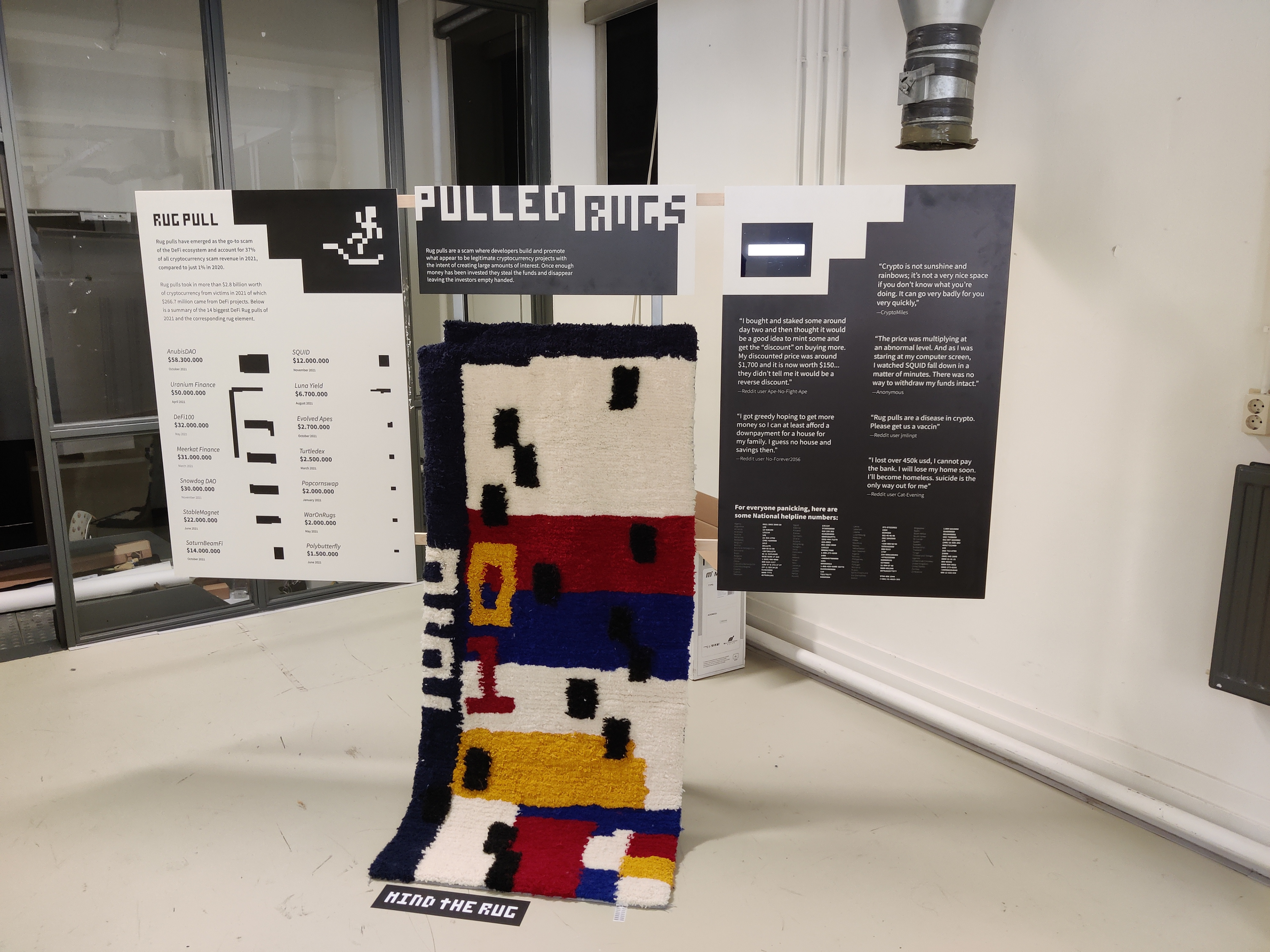 Voor mijn afstudeer project heb ik onderzoek gedaan naar oplichtingspraktijken in de gedecentraliseerde crypto omgeving. De data uit dit onderzoek heb ik vertaald naar een visualisatie waarin concept en medium samenkomen in een informatief en esthetisch geheel. Link naar de graduation catalogue